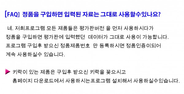 [FAQ]정품을 구입하면 입력된 자료는 그대로 사용할수있나요? 페이지 정보 작성자 관리자 작성일17-07-20 13:58 조회17,040회 댓글0건 관련링크 이전글 다음글 목록 본문 [작게보이시면 클릭] 댓글목록 등록된 댓글이 없습니다. 이전글 다음글 목록